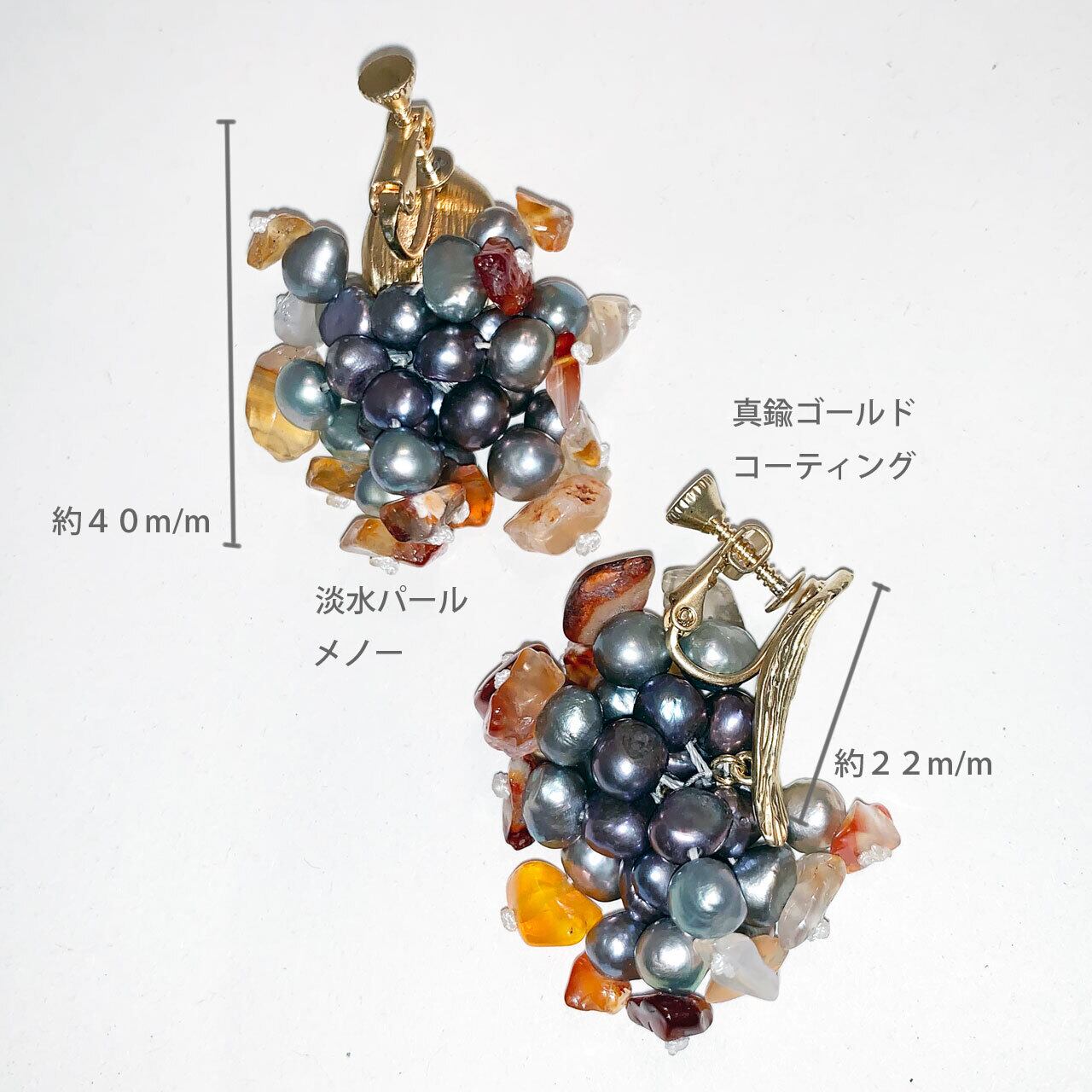 淡水パールとメーノーのボリュームがあるイヤリング。
