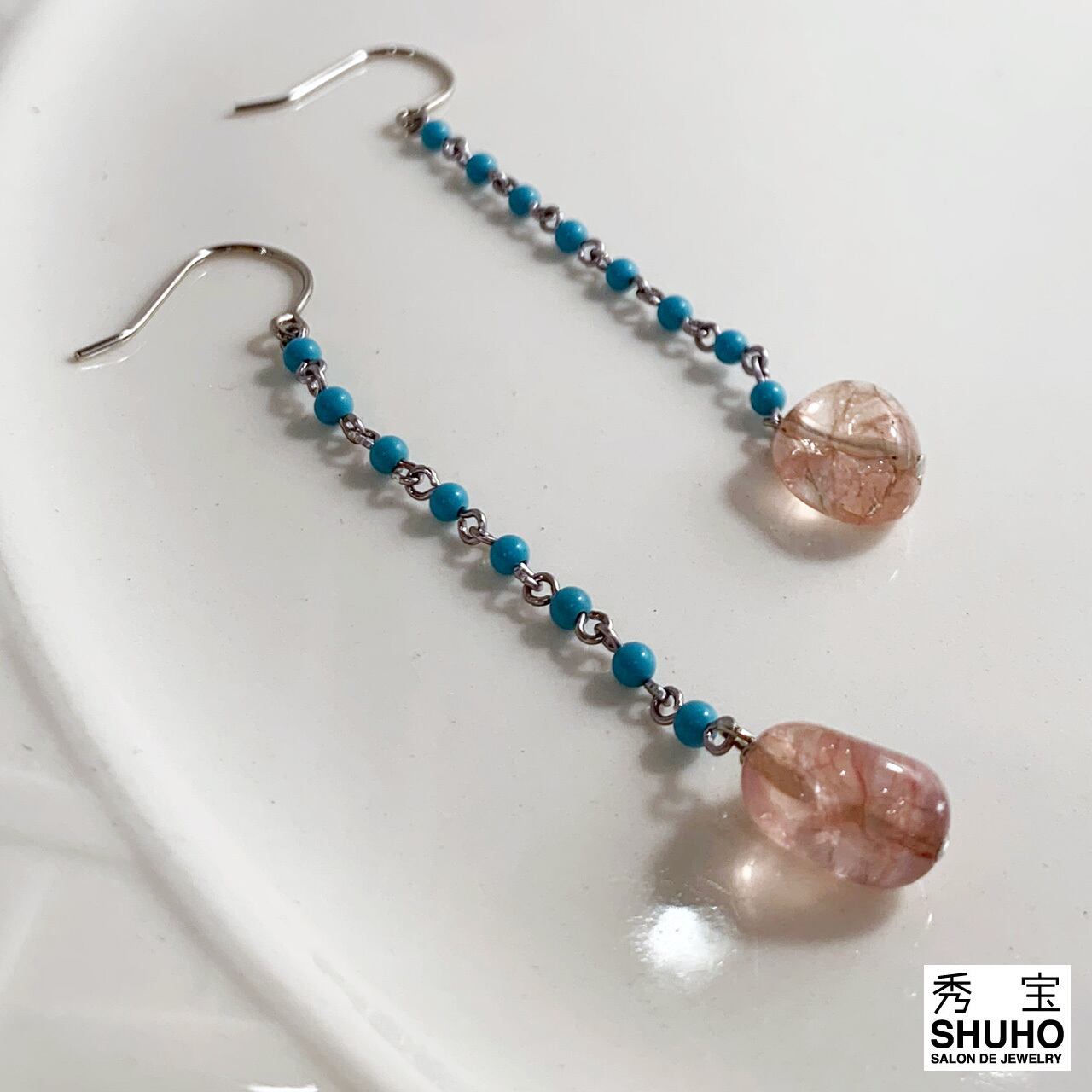 ターコイズ カラー水晶 ピアス(B-142)
