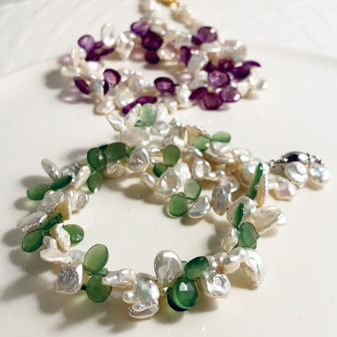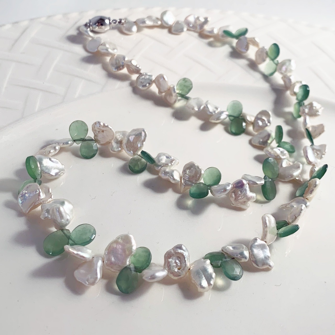 淡水パール アベンチャリンクオーツ ネックレス(B-148)