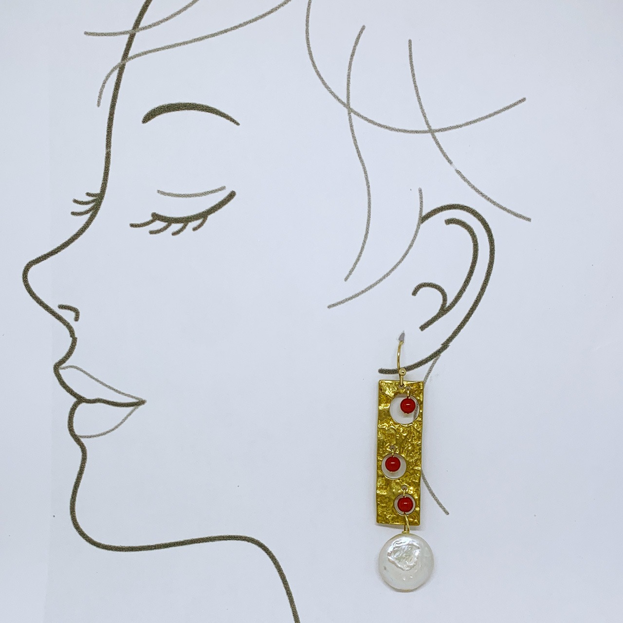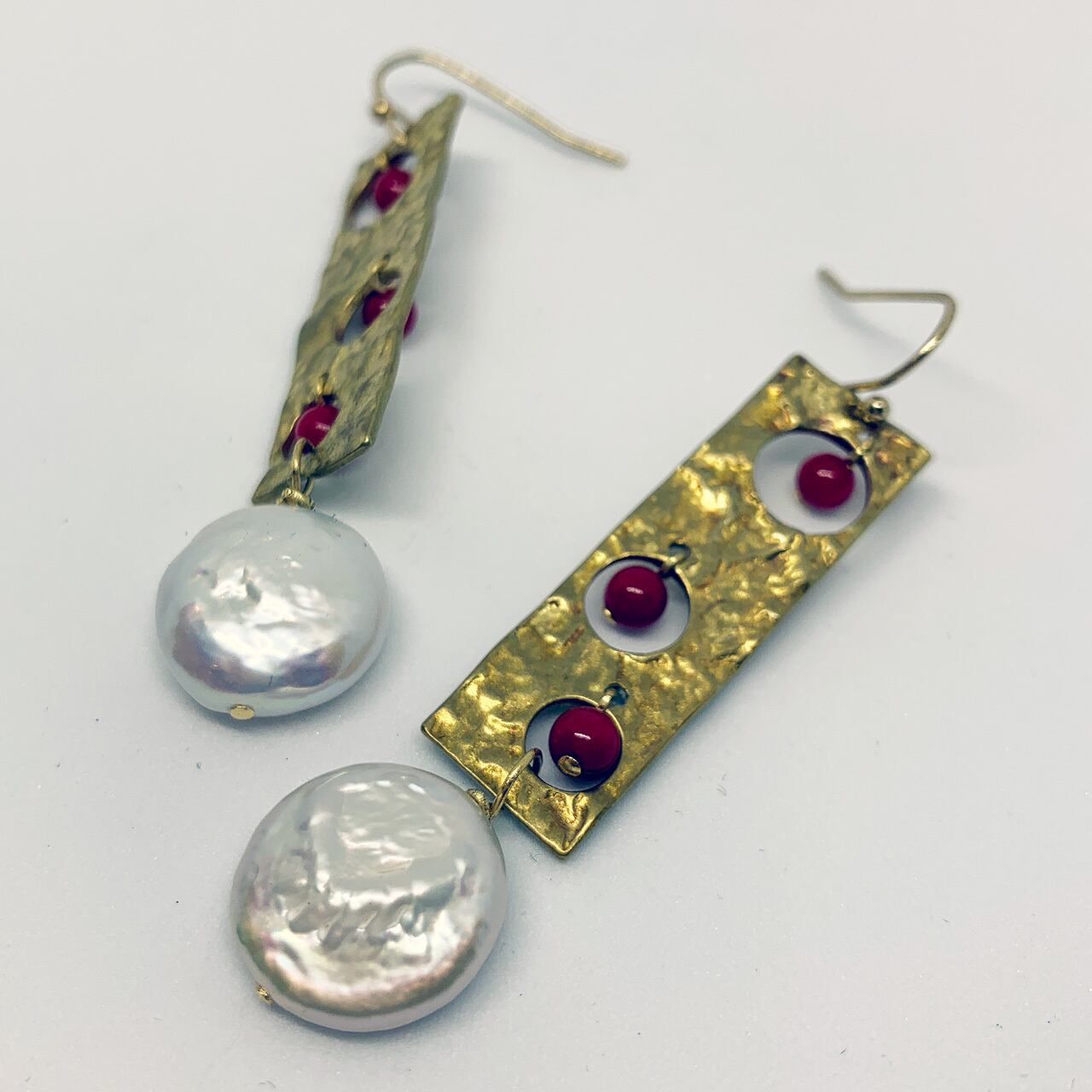 ブロンズ サンゴ コインパール ピアス(B-183)